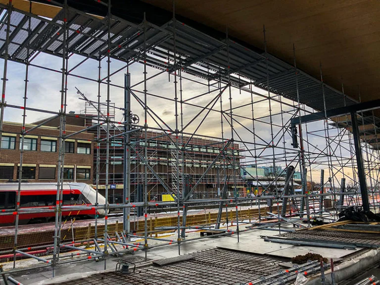 Supply and assembly of heavy Layher scaffolding systems for a commercial building project in Oslo, Norway.