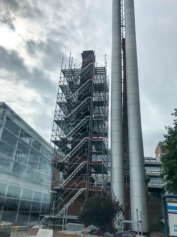 Supply and installation of access scaffolding and temporary roof protection delivered to maintain progress safely on a live environment.